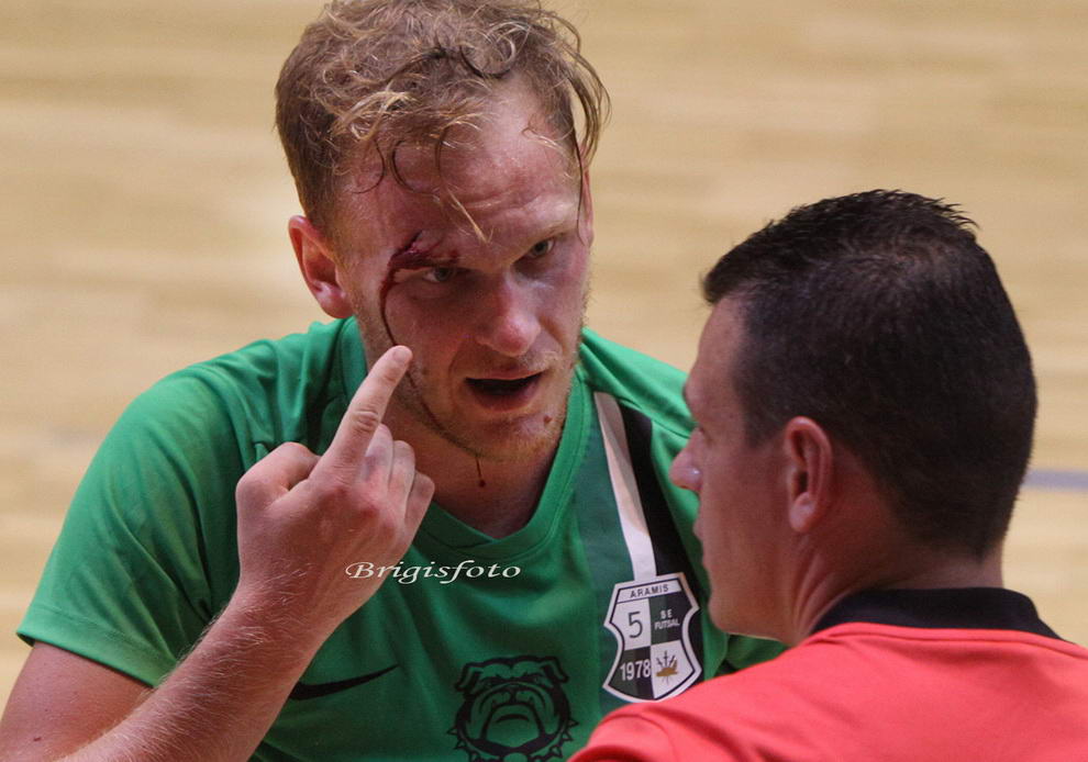 Majd jöttek egyre az Aramist eltaposó dolgok. A meccs hevében már többször Cingi alá tettek, majd egy ütközéskor az ellenfele úgy jött, hogy felszakadt a feje és ömlött a vér, ezért még őt ’jutalmazta’ a 2-es számú játékvezető egy sárga lappal; a hazai játékos csak arrébb sétált a nézőknek kiszólogatva –jól végezve dolgát-. Sikerült kivenni Gál Andrist az egyik legeredményesebb játékosunkat hosszú időre a játékból. Cingit a masszőr, a mentős is ápolta, hogy maroknyi csapatunkba vissza tudjon állni felszakadt fejjel is.